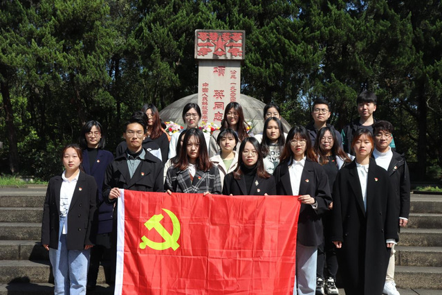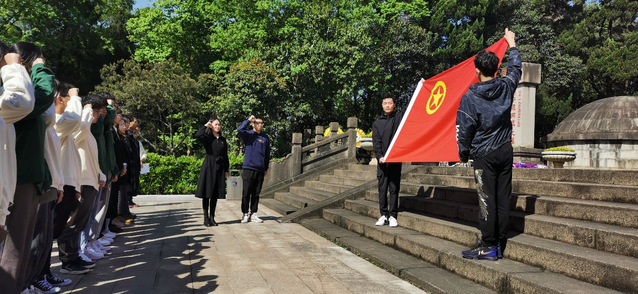 活动伊始,在2019级学生薛兆烜简单介绍皖南事变三烈士的英雄事迹后,全场默哀三分钟,缅怀先烈,寄托哀思。接着由学生代表向烈士敬献鲜花,一朵朵鲜花凝结着学院师生对英烈们最崇高的敬意。在领誓人的带领下,在场全体人员庄严肃穆,毅然有力地举起右拳,重温入党、入团誓词,誓言铿锵有力环绕烈士陵园,每一句誓言都感情真挚,饱含着对党、对团的忠诚热爱。庄严的宣誓让同学们更加深刻地认识到作为党员、团员的责任与义务,深刻认识到自身肩负的使命与担当。最后,参与成员献上对烈士怀念与追思的话语,并对陵园进行清扫。