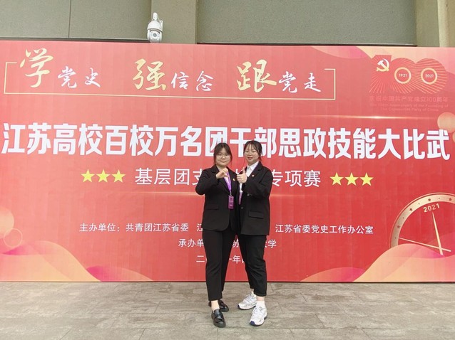 2021年4月25日,ylzz总站线路检测2019级的两位团支书郑向晴、胡秋怡同学代表我校参加了江苏省百校万名团干部思政技能大比武基层团支部书记专项赛总决赛,全校共3名同学参加。此次团支书大比武活动由共青团江苏省委联合江苏省委教育工委、江苏省委党史工作办公室共同主办,总决赛在江苏科技大学举行。