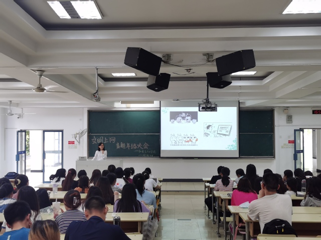 2021年5月14日下午,学院在教3-102召开“清朗网络 柚子力量”的文明上网主题年级大会。本次主题年级会由2019级辅导员虞丽老师主持,2019级全体本科生参加。