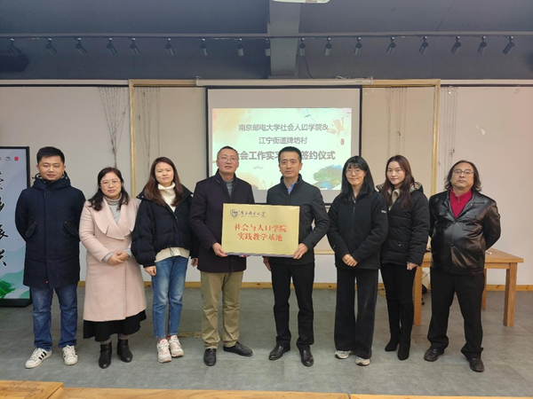 2022年1月10日下午,学院与南京市江宁区江宁街道牌坊村、南京红叶社会工作服务社签订实习实践基地协议,并举行了实践教学基地揭牌仪式。ylzz总站线路检测副书记兼副院长尹秀娟,副院长刘晓峰,院长助理周晶晶,社会工作系主任孙唐水,教师郑娜娜、孟骞,辅导员冯杰,南京市江宁区江宁街道牌坊村党总支书记、村委会主任卢青,南京红叶社会工作服务社理事长、南京工程学院社会工作专业教师张伟,南京红叶社会工作服务社杨孟奇、金冰等出席了本次签约仪式。
