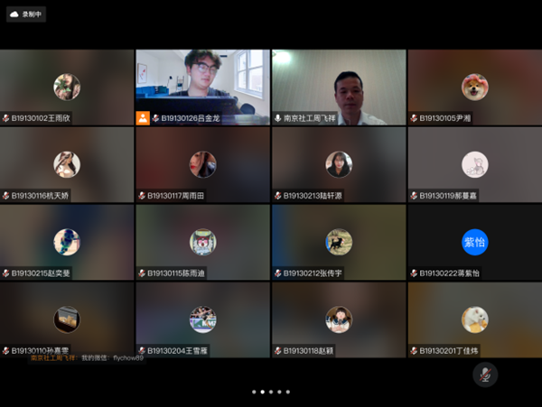 2022年4月25日上午,“社工实务沙龙”系列活动第5期如约举办。本次沙龙邀请南京市人大代表、江苏最美社工、南京市惠仁社会工作服务中心总干事周飞祥围绕社会工作的发展展开交流。沙龙由社会工作系吕金龙同学主持,社会工作专业2019级全体本科生参与。