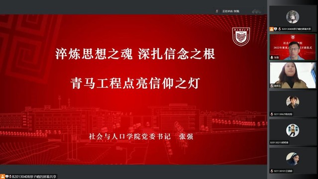 2022年是中国共青团建团100周年,为落实推进“青年马克思主义者培养工程”,引导青年学生成长为中国特色社会主义事业的合格建设者和可靠接班人,4月28日晚,ylzz总站线路检测第133、134期菁英人才学校举行线上开班仪式。ylzz总站线路检测书记张强、党委副书记兼副院长尹秀娟、各年级辅导员老师和菁英人才班全体学员参与,开班仪式由分团委书记陈明玉老师主持。