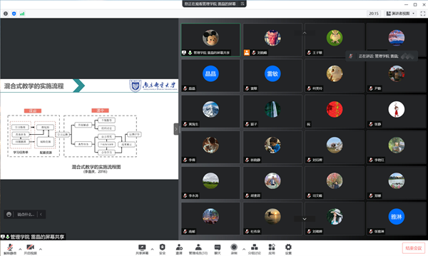 为进一步提升学院教师育人能力,做好即将开展的第四届“全国高校混合式教学设计创新大赛”的组织选拔工作,学院于5月25日晚举办“金讲台”教师育人能力提升系列沙龙活动,本期沙龙主题为:高效混合式教学的理念与实践,由管理学院雷晶老师主讲。南京邮电大学教务处副处长李永涛、经济学院副院长王子敏及30余位老师参加。本次沙龙活动由学院副院长刘晓峰主持。