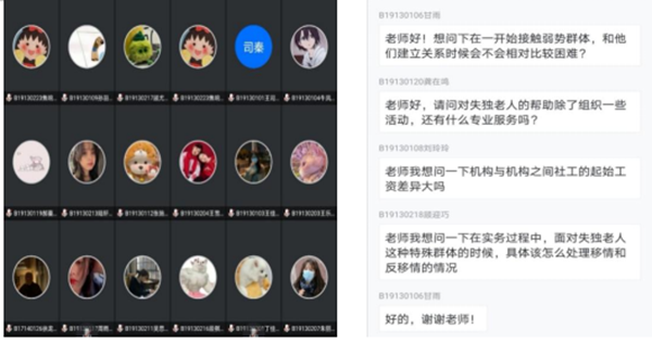 分享结束后,同学们就接触弱势群体存在的困难、对失独老人提供的专业服务以及特殊群体中移情与反移情等方面提出问题,黄老师对同学们提出的问题进行了耐心、详细的解答,并提出社工是一种有情怀、有专业理念的职业,积极鼓励同学们选择社工行业、热爱社工专业,将自身所学投入到实践中去。