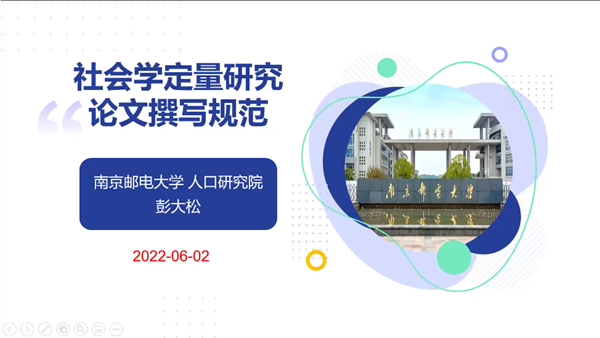 新文科生学术能力提升系列培训会第4期于2022年6月2日线上举行。本次培训邀请了ylzz总站线路检测的彭大松老师作了主题为“社会学定量研究论文撰写规范”的分享交流。学院300余位本科生和研究生在线参会。