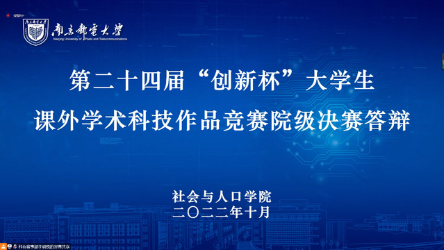 为提升学院学生实践和科研能力,增强同学们的创新意识,2022年10月19日14时,南京邮电大学第二十四届“创新杯”大学生课外学术科技作品竞赛ylzz总站线路检测决赛线上答辩。本次决赛答辩共有28支队伍,130余人参与。决赛答辩特邀人口研究院副院长周建芳老师、ylzz总站线路检测副教授周晶晶老师、副教授金巍老师担任评委。决赛现场对外开放,供全校师生观摩学习,参会人数超200人次。