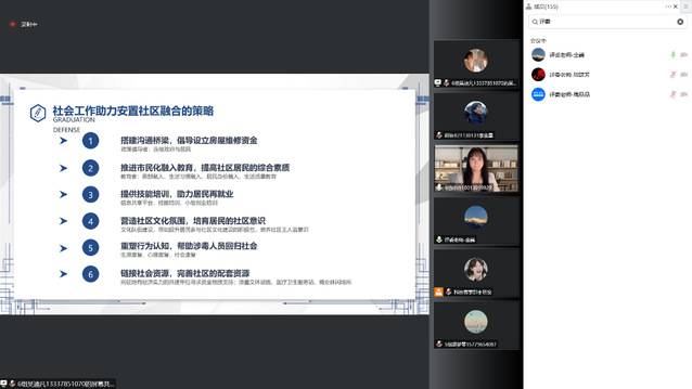 本次“创新杯”大学生课外学术科技作品竞赛院赛自7月份宣传以来,共收到40份作品,经过初赛筛选,最终选出28支队伍进入决赛。参赛作品选题涉及返乡就业、疫情经济、知识产权保护、社会工作、环境治理等多个领域,重点关注数字医疗、智慧养老、乡村自治等热点问题的研究讨论,体现当代大学生对社会现状的关注与思考。决赛答辩由“选手展示”与“评委问辩”两部分构成,参赛选手通过幻灯片放映向评委老师和同学们展示本组作品。评委老师根据各组答辩内容及作品研究报告,给出专业详尽的评审意见,并从整体结构框架到具体研究内容,为各组选手提供针对性指导。