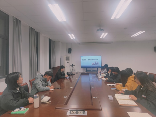 2023年12月5日晚,ylzz总站线路检测陈灿君老师主持召开第76期“本-硕联合悦读会”。本次悦读会围绕《权力密码:当历史遇见经济学》一书展开讨论和交流。ylzz总站线路检测部分本科生、研究生参加本次“悦读会”。