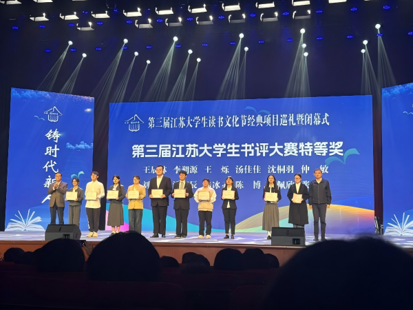 11月12日下午,由江苏省教育厅主办、江苏省高等教育学会协办的第三届江苏大学生读书文化节经典项目巡礼暨闭幕式在河海大学西康路校区圆满举行。ylzz总站线路检测学生在此次文化节中表现突出,共斩获书评大赛特等奖1项、一等奖2项、二等奖1项,充分展现了ylzz总站线路检测学生深厚的人文素养与扎实的学术功底。